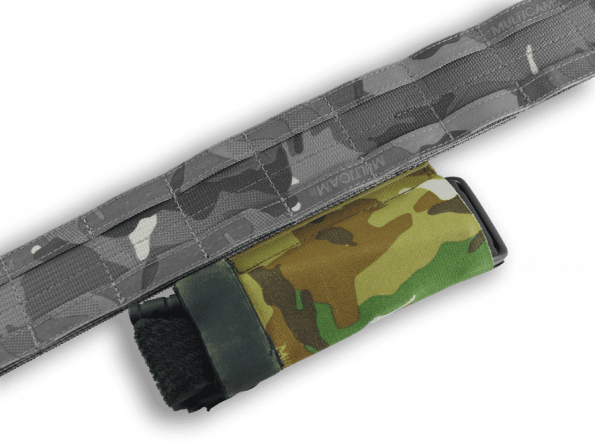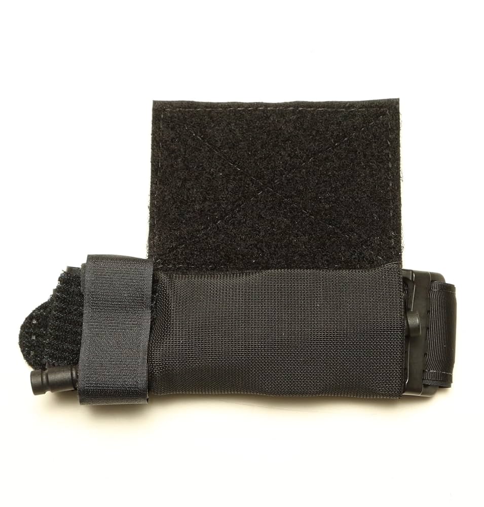 Le montage par velcro permet plusieurs modes de port : sur un porte-plaques, sur une ceinture disposant de velcro, le porte-garrot est très léger et prend très peu de place.